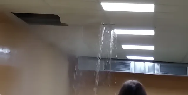 "Вследствие значительного увеличения веса за счет воды, обвалился сегмент подвесного потолка. К счастью, никто не пострадал. Следственно-оперативная группа устанавливает детали. По данному инциденту назначена служебная проверка", — говорится в сообщении.