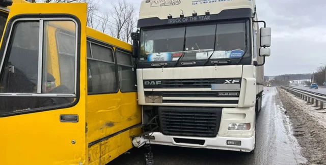 Вблизи Тернополя не разминулись автобус и два грузовика, восемь пострадавших (фото, видео)
