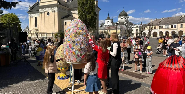 Рекордная вышитая писанка на главной площади Жолквы | Фото: Жовковский городской совет
