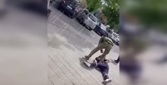 На кадрах видно, как мужчина в военной форме избивает другого мужчину, который лежит на земле. При этом военный бил его руками и ногами, волочил по земле. В подписи к видео утверждается, что это мужчина в форе — это сотрудник территориального центра комплектования и соцподдержки (ТЦК и СП). Впрочем, по видео это установить невозможно.