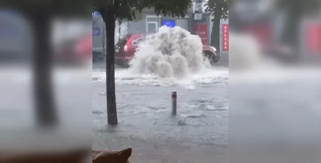 На записях можно увидеть людей на улицах, которые пробираются по косточки в воде. Машинам вода доходит до середины колес, свидетельствуют записи с места событий. Также отмечается, что заметили гейзеры, которые бьют прямо на проезжей части. Кроме того, на центральных улицах начал ломаться асфальт — видно, как он пошел трещинами и "волнами".