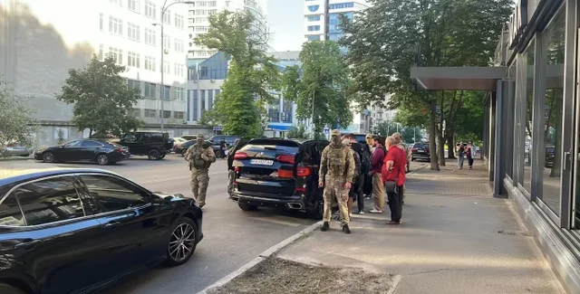 Корреспонденты издания отметили, что Тимошенко находился в автомобиле, вокруг которого работали детективы ведомства.