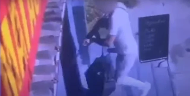 На видео, которое опубликовала пресс-служба, можно увидеть мужчину молодого возраста, который, держа автомат в руках, вбегает в заведение. После этого оттуда выскакивает неизвестный гражданин и продавщица. Через несколько секунд появляется злоумышленник: он несет за спиной тяжелый рюкзак, автомат держит на груди, не спешит и вежливо ждет подходящего момента, чтобы перейти автотрассу.