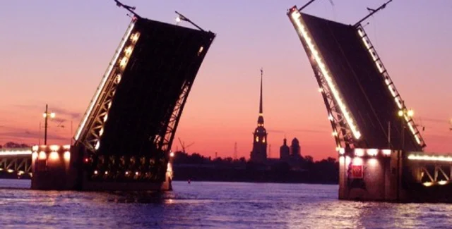 Специалисты обещают со следующей ночи продолжить разводить Дворцовый мост.