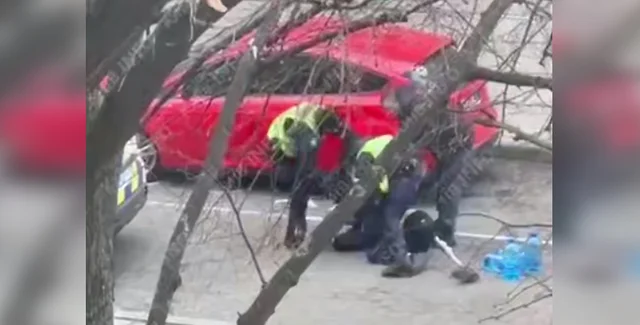 Пользователи отмечают, что на кадрах — ветеран российско-украинской войны. Судя по видео, конфликт с полицейскими возник возле красного хэтчбека Ford, припаркованного на обочине.