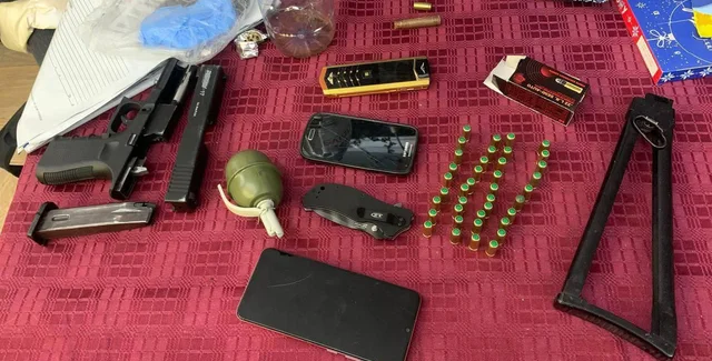 К двум несовершеннолетним фигурантам скандала с русской музыкой в центре Киева пришла полиция и провела обыск по подозрению в незаконном владении огнестрельным и холодным оружием. В квартирах действительно обнаружили запрещенные предметы — от пистолета с патронами до бутафорской гранаты. О ходе и результатах обыска ГУ Нацполиции в городе Киев рассказало на странице Facebook.