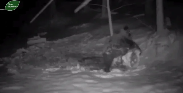 Лепил снеговика и катался на сене: на Буковине камера зафиксировала медведя, который не впал в спячку (видео)