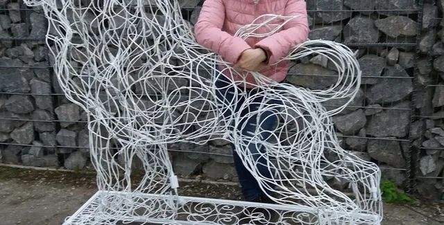 Виктория изготавливает из металлической проволоки огромные фигуры животных