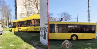 Автобус, который ехал по троллейбусному маршруту №36 и направлялся в Оболонский район, проехал по газонам на Виноградаре. "Странную картину" жители столицы наблюдали примерно в 8:00 утра.