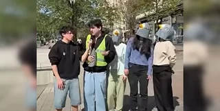 Он дал блогеру возможность также почувствовать себя птицей, померив его голубиную маску. После того тот "взмахнул крыльями" и заявил об ощущении легкости.