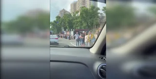 Также паблик показал фото очереди на остановке, с которой идет автобус на левый берег столицы.