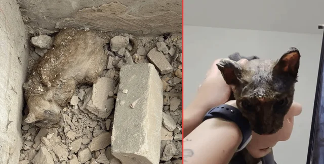 В Киеве кошка провела несколько дней под завалами: ее семья погибла, а тело покрыли ожоги (фото)