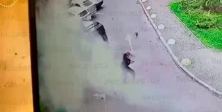 Как видно на кадрах, обломки после взрыва разлетелись по сторонам, а мужчина, бросившись бежать, практически не пострадал.