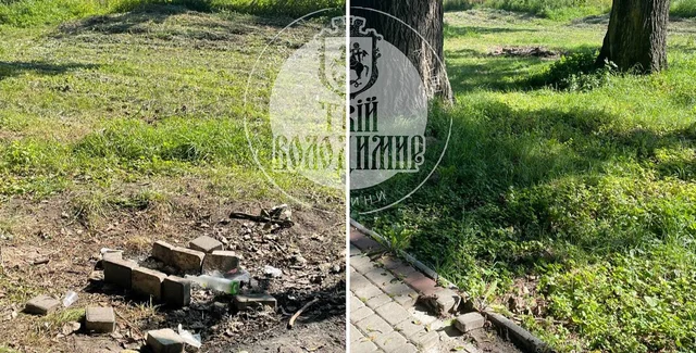 В городе Владимир Волынской области неизвестные отдыхающие оборудовали в парке мангал для шашлыков из подручных материалов.