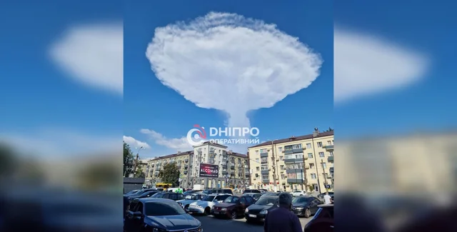 В небе над Днепром поднялось облако, напоминающее последствие ядерного взрыва. Очевидцы надеются, что это — не пророчество от природы на грядущую осень.
