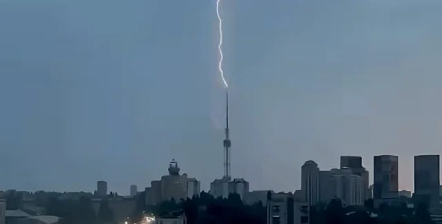 Киевская телебашня является одним из самых высоких сооружений в Украине — ее высота превышает 380 метров. Благодаря специальным системам заземления она регулярно принимает удары молний во время гроз, и хотя подобные явления выглядят зрелищно, они не представляют угрозы для самой конструкции.