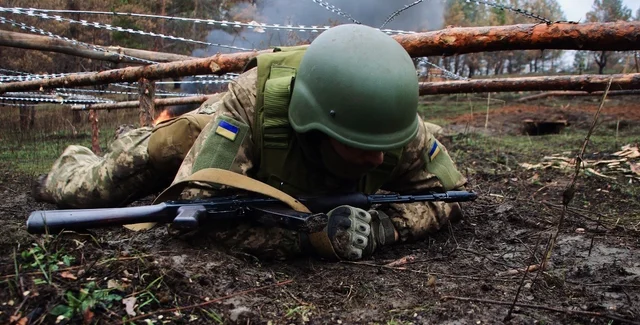 В соцсетях распространилось видео, как утверждается, подготовки мобилизованных мужчин в одном из учебных центров Черниговской области. На кадрах люди в гражданской одежде ползут по земле под присмотром людей в форме.