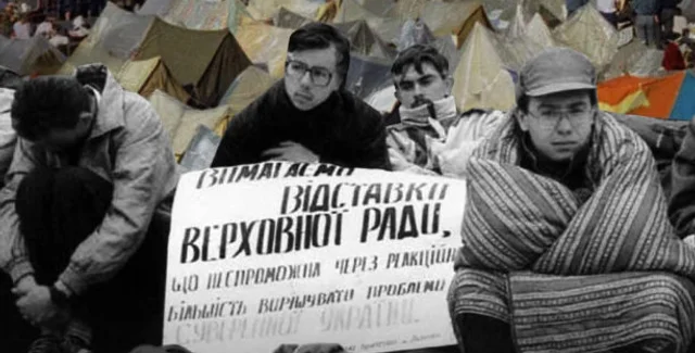 По данным Украинского института национальной памяти, 2 октября 1990 года на тогдашней площади Октябрьской революции появился палаточный городок студентов из разных городов Украины. Они объявили голодовку и выдвинули ряд политических требований: отставка главы правительства Виталия Масола, неподписание нового союзного договора, прохождение срочной службы только на территории Украины и национализация имущества КПУ и комсомола.