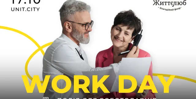 17 октября благотворительный фонд "Жизнелюб" устраивает "WORK DAY" — первое в Украине масштабное оффлайн мероприятие, которое одновременно объединит работодателей и соискателей работы в возрасте 50+.