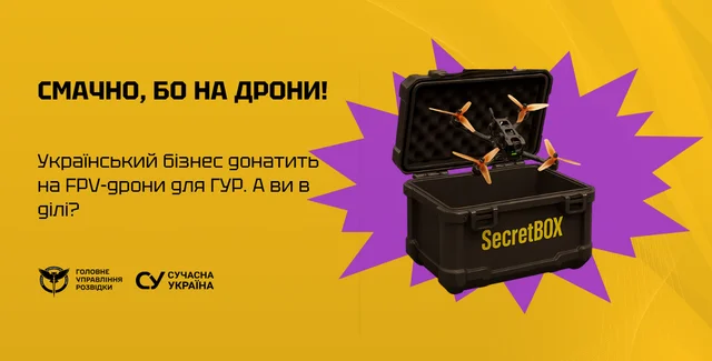 Каждый SECRET BOX — это готовый комплект ударных FPV-дронов, собранный под конкретные нужды подразделения ГУР. Стоимость одного BOXа — 50 000 гривен, в нем — FPV-дрон, оптоволоконная катушка и все необходимое для поражения врага. Бизнесу предлагают присоединиться удобным способом: приобрести один или несколько SECRET BOXов, профинансировать часть стоимости BOXа или организовать сбор средств среди команды или клиентов.