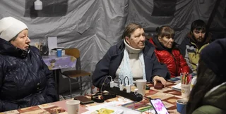Теплые палатки — "пункты несокрушимости" — стали частью городской жизни. Людмила Николаевна, 68 лет, приходит туда зарядить телефон, выпить горячего чая и подключиться к Starlink. Вечера она проводит дома в полной тьме, читая детективы под свет фонарика.