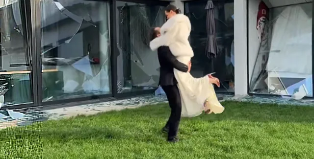 Случившееся не помешало влюбленным сыграть свадьбу, и в конце видео жених и невеста счастливые позируют у разбитых стекол в 10 часов утра 25 ноября, а через полтора часа у них должна была состояться роспись.