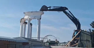 Месяц назад ее начали ремонтировать — рабочие должны были привести столбы в порядок и вернуть историческую надпись "Граждане СССР имеют право на отдых". Сегодня внезапно приехал экскаватор и начал крушить объект культурного наследия, сообщает Telegram-канал "Mash на волне".