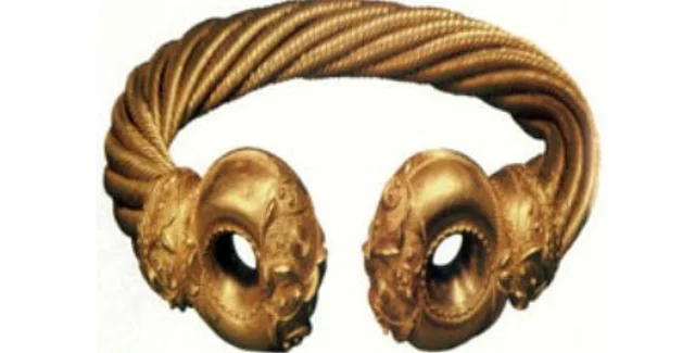 Клад, обнаруженный с помощью обычного металлодетектора, состоит из четырех золотых кельтских ожерелий (торков), датируемых III - I вв. до нашей эры.