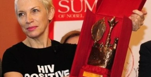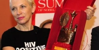 Шотландская певица Энни Леннокс удостоена премии "Женщина мира" на ежегодном саммите лауреатов Нобелевской премии мира в Берлине за работу по повышению осведомленности о ВИЧ/СПИДе