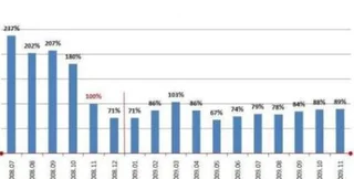 При уменьшении числа вакансий в 2,5 раза в 2009 г. по сравнению с 2008-ым, объем поступающих резюме увеличился в среднем на 62%. Зазор между спросом и предложением начал расти в конце лета 2008 г., когда количество вакансий на рынке труда "белых воротничков" равнялось количеству предложений от самих кандидатов. "Ситуация при которой работодатель в целом получает относительно небольшой конкурс на вакансии и испытывает объективный дефицит специалистов по целому ряду позиций. На протяжении всего 2009 года соотношение спроса и предложения (конкурс на вакансии) было стабильно выше, чем в предыдущие несколько лет. И тенденция пока сохраняется", - комментируют ситуацию на рынке труда в HeadHunter.