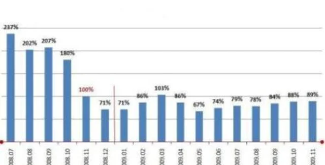 При уменьшении числа вакансий в 2,5 раза в 2009 г. по сравнению с 2008-ым, объем поступающих резюме увеличился в среднем на 62%