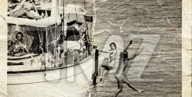 Предположительно, снимок, на котором можно увидеть сенатора Кеннеди, загорающего на яхте в шезлонге, в то время как его спутницы ныряют и принимают солнечные ванны, сделан в августе 1956 года.