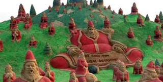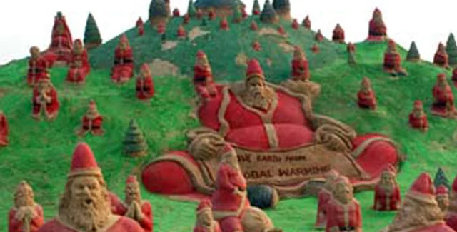 Песчаные Санта-Клаусы были созданы художником, чтобы привлечь внимание людей к проблеме глобального потепления. Ранее Патнаик уже посвящал этой теме скульптурную композицию, изображавшую рождественские елки, передает Lenta.ru.