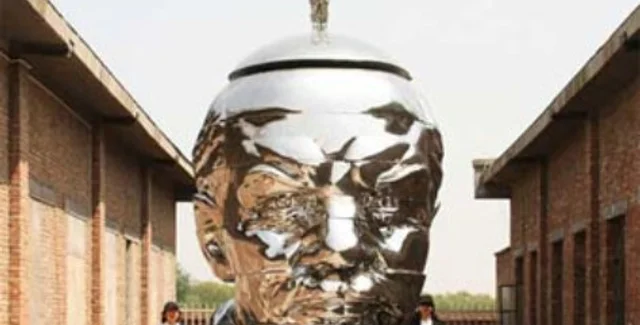 Художники из Пекина братья Гао представили на Ванкуверском биеннале скульптуры свое новое произведение, которое называется "Мисс Мао пытается держать равновесие на голове Ленина" (Miss Mao Trying to Poise Herself at the Top of Lenin"s Head)