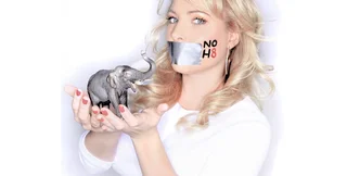 Фотография жены бывшего кандидата в президенты от Республиканской партии - Синди Маккейн - размещена на сайте защитников однополых браков No H8 Campaign. На снимке жена Маккейна изображена с заклеенным скотчем ртом и с надписью на щеке "NOH8" (Нет "Предложению 8").