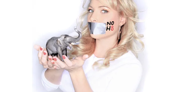 Дочь Маккейна, Меган, также сфотографировалась для No H8 Campaign с заклеенным ртом, кроме того, на снимке она "держит в руках" слона - символ Республиканской партии.