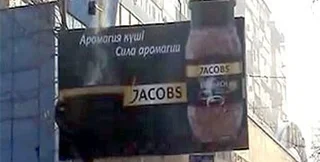В нескольких крупных городах Казахстана для рекламы кофе Jacobs был использован специальный "дымящийся" билборд. Многие посчитали, что рекламный щит загорелся