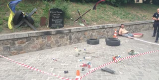 "Разбиты лампадки, разорваны флаги, разбросаны цветы, шины и брусчатка", – написал он.