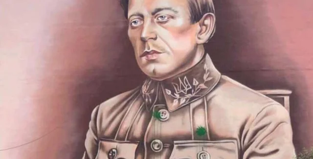 В Соломенском районе столицы неизвестные испортили зеленой краской недавно открытый мурал, посвященный Симону Петлюре.