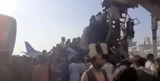 Вечером, 15 августа в аэропорту Кабула начался хаос из-за того, что тысячи людей пытаются покинуть Афганистан.