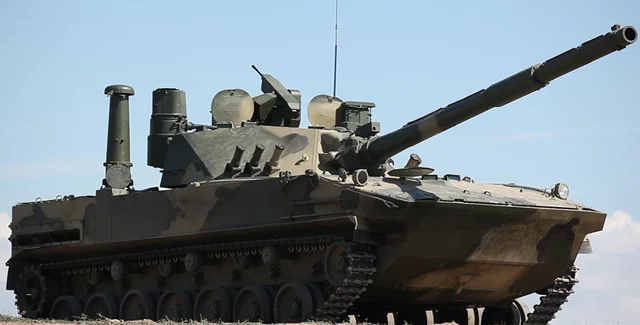 "Спрут-СДМ1" — противотанковая самоходная пушка 125-мм калибром. Она может развивать скорость для 70 км/ч на шоссе и до 9 по воде. Сейчас разработка проходит испытания в РФ.