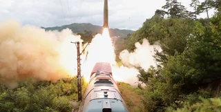 Дешево и сердито. В Северной Корее запустили ракету с платформы на поезде (видео)