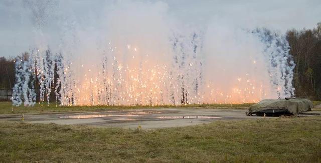 Комплекс работает во время атаки, определяя угрозы и "пряча" технику за завесой из комбинированных помех.