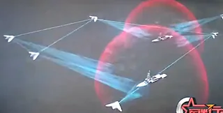БПЛА работали в одной системе, их запустили с новейшего корабля флота Type-075. Также были показаны ракеты, которые были в составе одного роя.