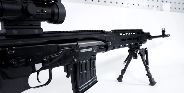 Вместо деревянного приклада, белорусская модернизация получила телескопический приклад, который можно регулировать для затыльника, щеки и длины приклада.