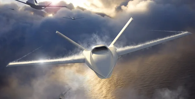 На кадрах виден условно пилотируемая платформа Next Generation Air Dominance. Это большой, стелс-беспилотник, который немного схож с проектом "Сын Ареса".