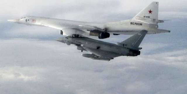 В пятницу Королевские ВВС заявили, что их "Тайфуны" сопровождают два российских бомбардировщика Ту160 подальше от "зоны интересов Великобритании" над Северным морем.