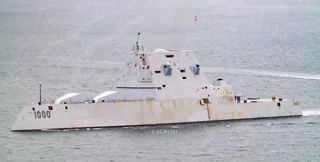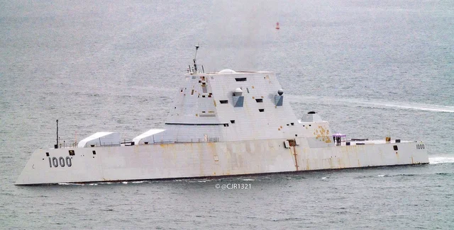 Этот военный корабль сдали в эксплуатацию пять лет назад. Автор статьи отметил "менее блестящий вид футуристического военного корабля". Некоторые радиопоглощающие пластины на корпусе потеряли цвет.