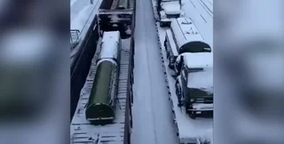 На видео попал эшелон, на котором были замечены не только пусковые установки к ракетному комплексу, но и сами ракеты.