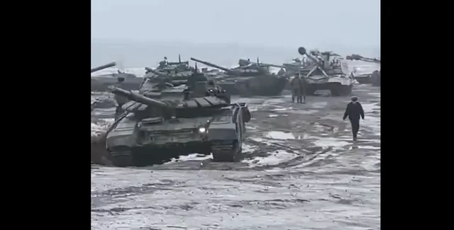 Тем временем в социальных сетях продолжают публиковать передвижение российских войск в приграничных с Украиной областях. В частности, в Валуйском районе (Белгородская область) замечены колонны техники без опознавательных знаков. Видео заснято в 8 км от украинской границы.